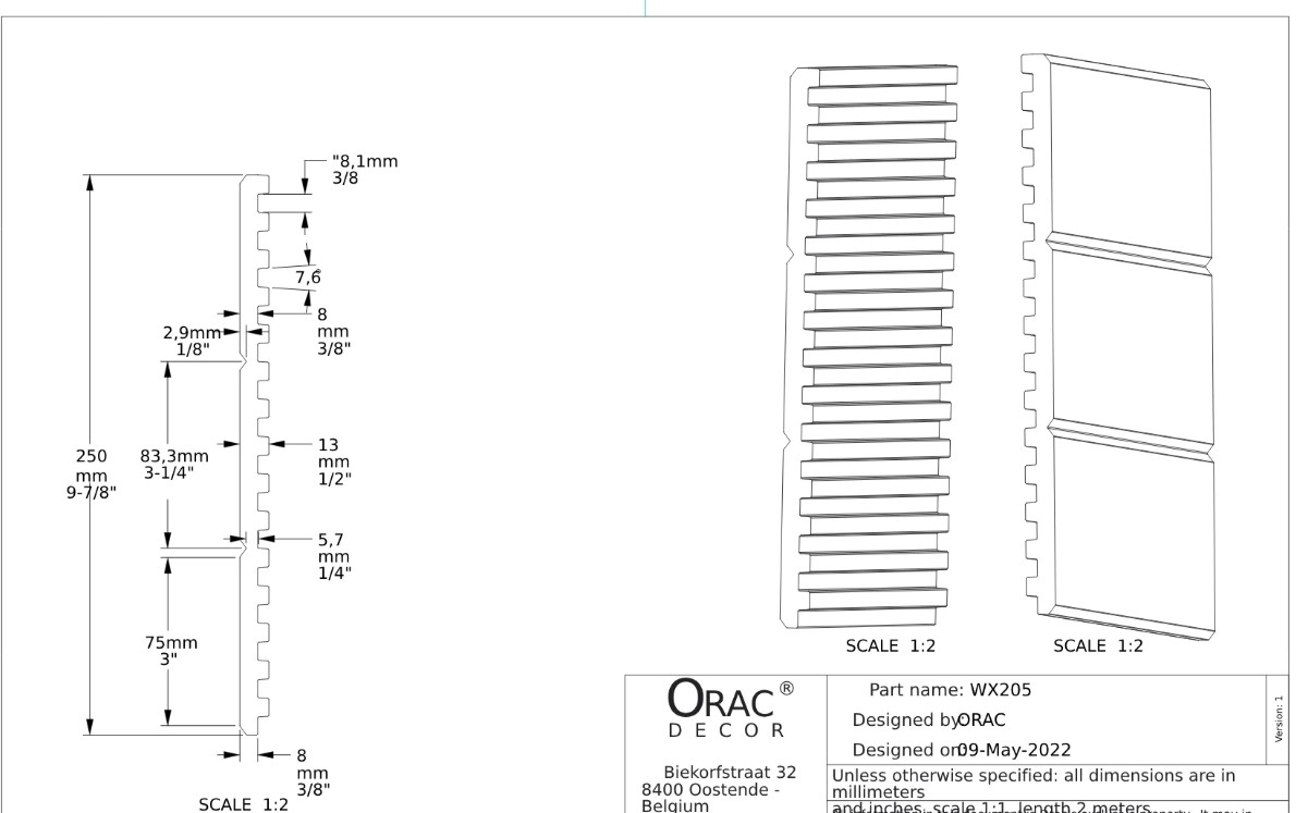 Добавьте глубины вашему интерьеру с помощью этой гибкой линейной стеновой панели WX205F. Прямоугольные и рифленые линии представлены в двух пропорциях, так как изделие можно использовать с обеих сторон. Выбор за вами. RIPPLE и TRACK — новые 3D-панели для облицовки стен от Orac Decor, которые теперь впервые доступны из дюрополимера и в более длинных вариантах, что позволит вам украсить свои стены. Идеально подходит для покрытия потолков полной высоты за один проход или для обшивки низких панелей в сложных условиях. Изготовлено из 100% экологически чистых материалов. Только сторона А грунтуется. На сторону B нанесите два слоя финишной краски или сначала слой грунтовки, а затем финишную краску.