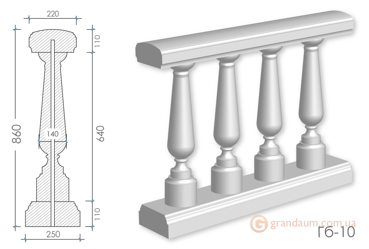 Балюстрада из гипса Гб-10 h860 мм