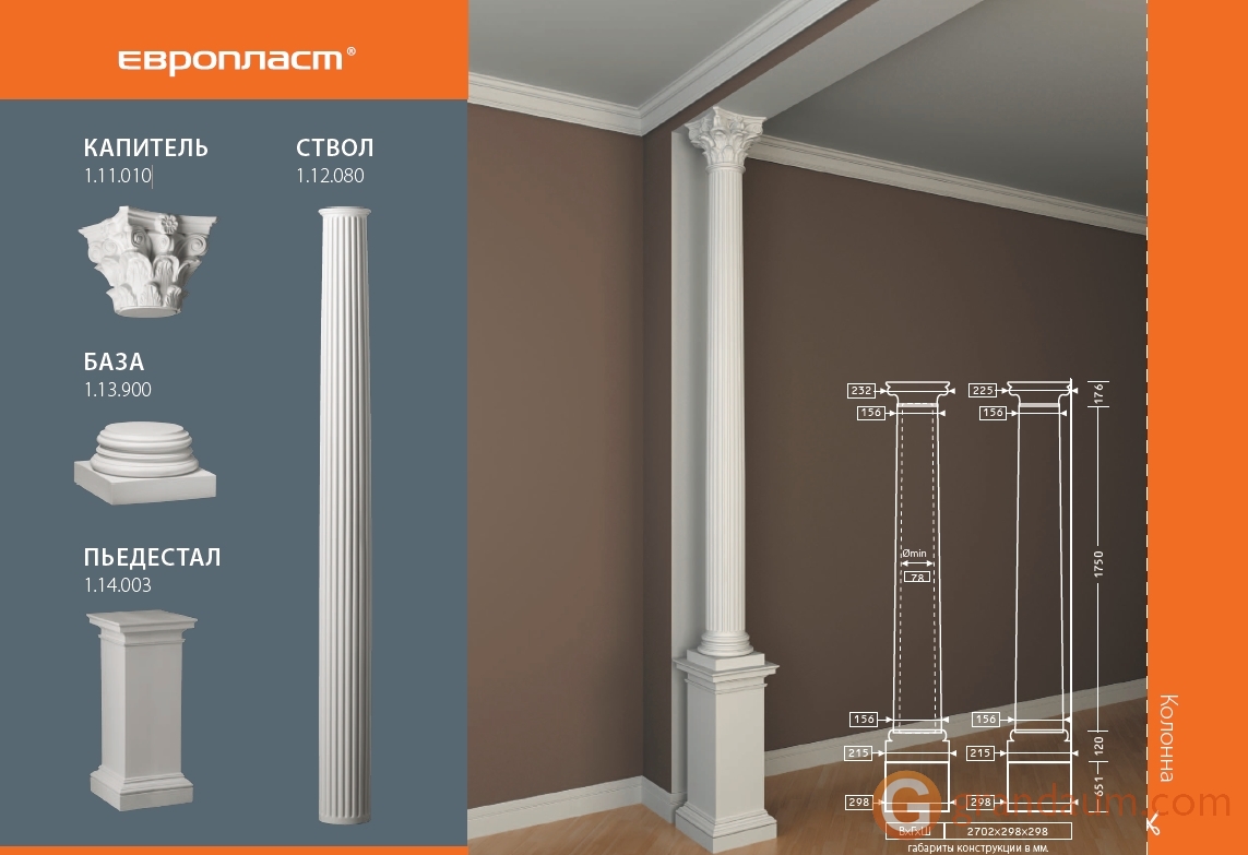 Создайте индивидуальный традиционный интерьер с помощью пилястр. В классических домах, ресторанах и гостиницах пилястры добавляют нотку элегантности и классического стиля. Прочный полиуретановый материал защищает от ударов и повреждений.