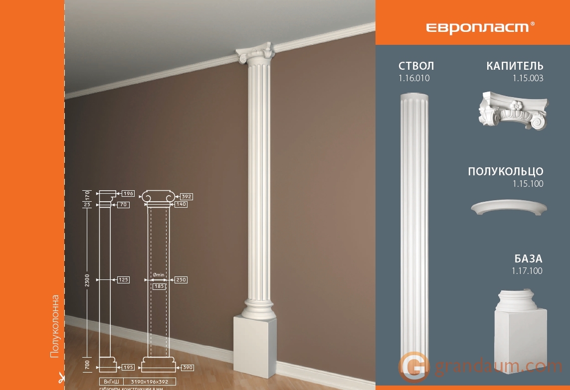 • Модель:  Европласт 1.15.003 Полуколонна капитель