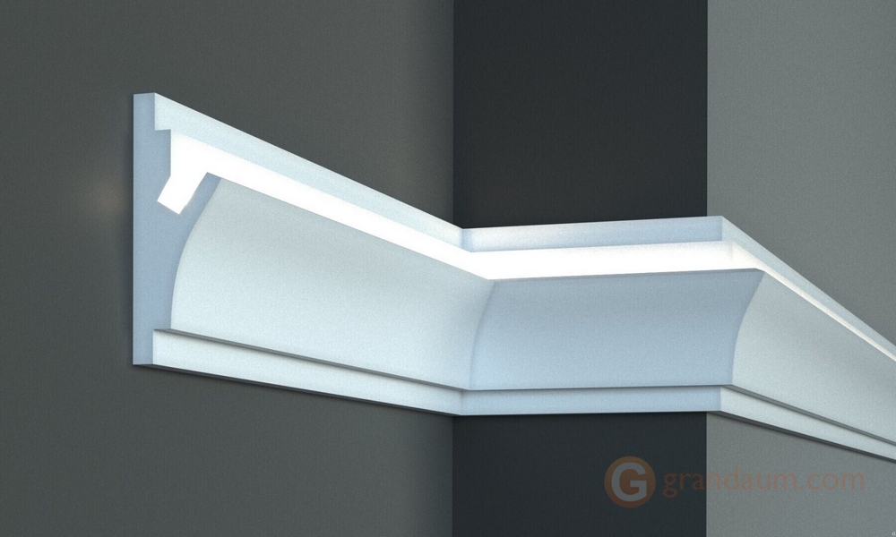 Создайте индивидуальный интерьер, тёплую и уютную атмосферу с помощью карнизов для скрытого освещения из полиуретана и дюрополимера. Карнизы под LED скрытое освещение можно размещать на стене под разными углами, чтобы изменить направление света в интерьере. Благодаря легкому, но прочному материалу установка не представляет сложности. Существует множество возможностей применения, позволяющих создавать уникальные и динамичные интерьеры.
