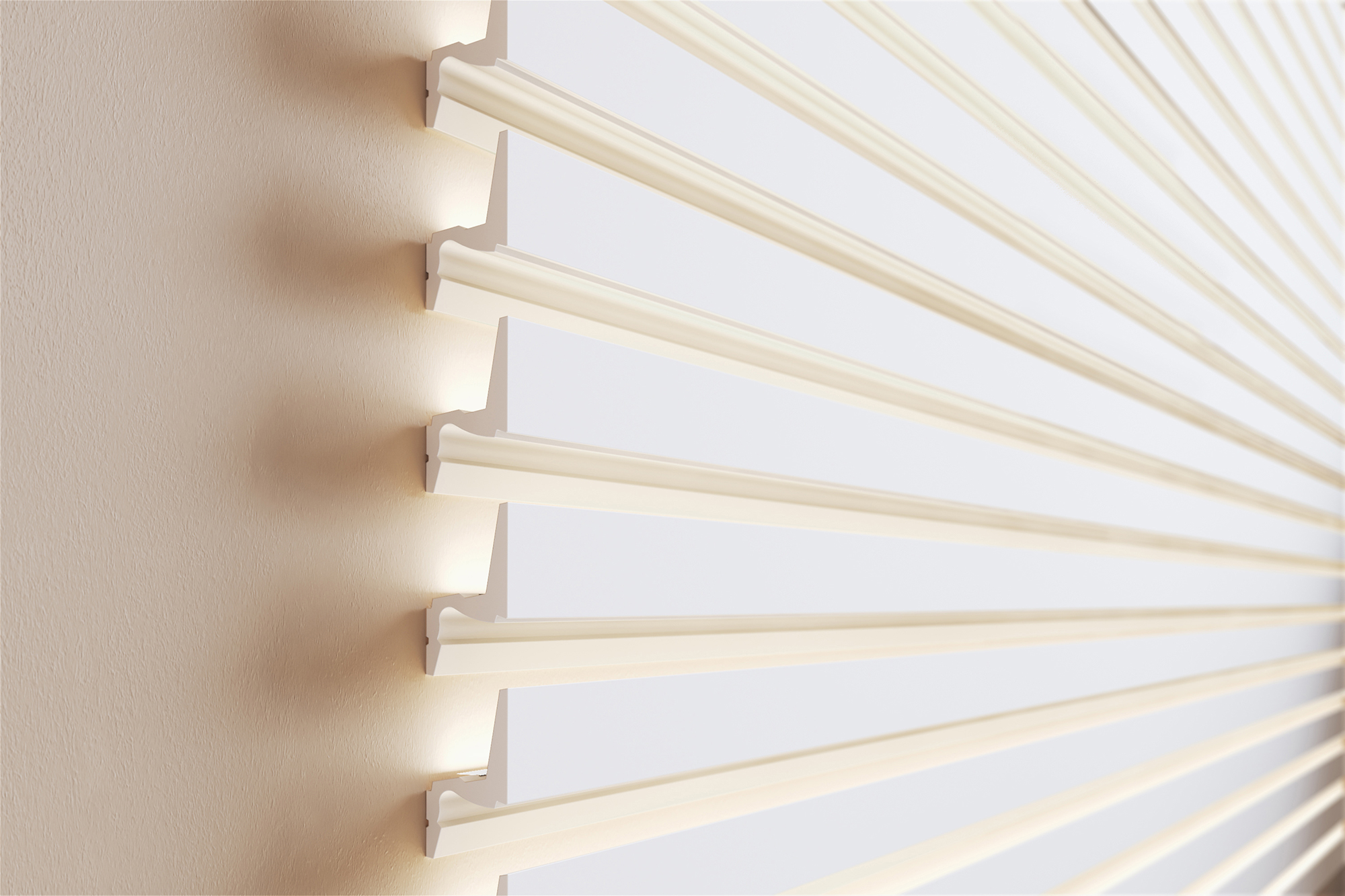 Эти молдинги предназначены для скрытия светодиодных лент с обратной стороны карниза. Дайте волю своему творчеству, изменяя направление света устанавливая карнизы по диагонали, вертикали или горизонтали.