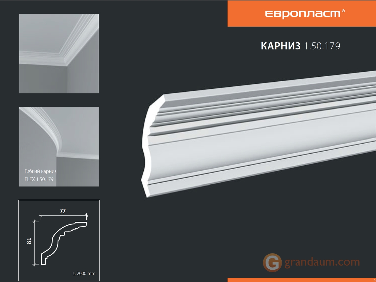 Для установки карниза c гладким профилем Европласт 1.50.179 (К-179) требуется монтажный клей NMC Adefix P5 и стыковочный клей (по желанию клиента) NMC Adefix Plus или Orac decor Decofix Pro FX200/210. Количество клея Вам поможет рассчитать наш специалист.