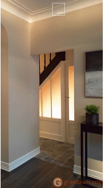 Каждый молдинг AD22 поставляется загрунтованным и готовым к покраске. Используйте клей ADEFIX® PLUS для монтажа карниза AD22. При использовании в качестве самостоятельного карниза рекомендуется наносить клей на все три точки контакта. Пространство за молдингом также можно использовать для скрытия других проводов и неровных переходов, щелей.