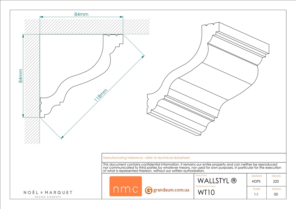 Установка карниза WT10 выполняется быстро и легко благодаря прочному и легкому материалу. Каждая часть карниза поставляется загрунтованной и готовой к окончательной покраске. Материал WT10 устойчив к влаге и подходит для кухонь и ванных комнат.