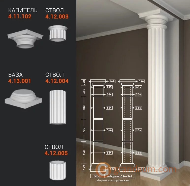Создайте индивидуальный классический интерьер с помощью колонн из полиуретана. В классических домах, ресторанах и гостиницах колонны и полуколонны добавляют нотку элегантности и классического стиля. Прочный полиуретановый материал защищает от ударов и повреждений.