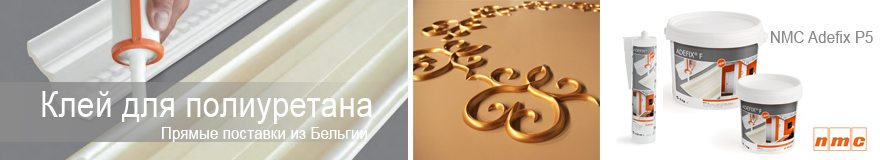Наша компания напрямую из Бельгии поставляет клей Adefix P5 (Adefix Plus). Наш клей специально разработан для строительных целей, а именно монтажа изделий из полиуретана и полистирола. С помощью данного клея, возможно, монтировать не только плинтуса, декоративные розетки, панно, молдинги но и все остальные элементы лепного декора. Применять его можно во внутренних помещениях, где поддерживается сухой или нормальный режим влаги. Наилучшим образом клей походит для изделий из полистирола и полиуретана.