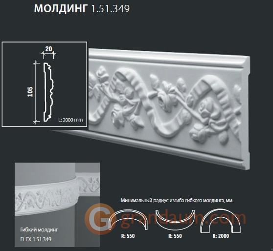 Для установки гибкого молдинга Европласт 1.51.349 (М-349) требуется монтажный клей NMC Adefix P5 и стыковочный клей (по желанию клиента) NMC Adefix Plus или Orac decor Decofix Pro FX200/210. Количество клея Вам поможет рассчитать наш специалист.