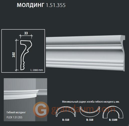Для установки гибкого молдинга Европласт 1.51.355 (М-355) требуется монтажный клей NMC Adefix P5 и стыковочный клей (по желанию клиента) NMC Adefix Plus или Orac decor Decofix Pro FX200/210. Количество клея Вам поможет рассчитать наш специалист.