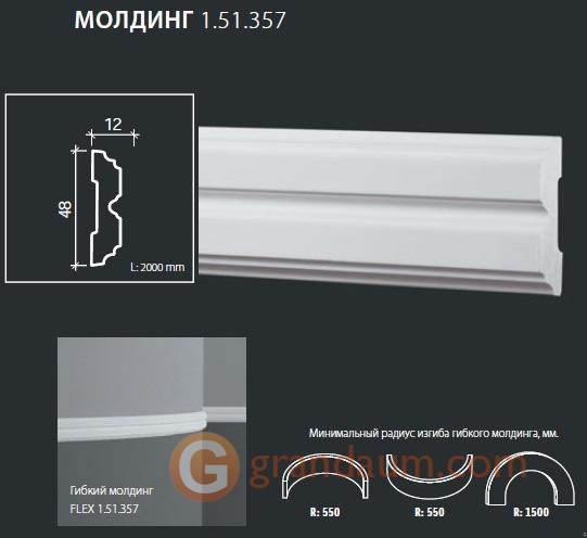 Для установки гибкого молдинга Европласт 1.51.357 (М-357) требуется монтажный клей NMC Adefix P5 и стыковочный клей (по желанию клиента) NMC Adefix Plus или Orac decor Decofix Pro FX200/210. Количество клея Вам поможет рассчитать наш специалист.