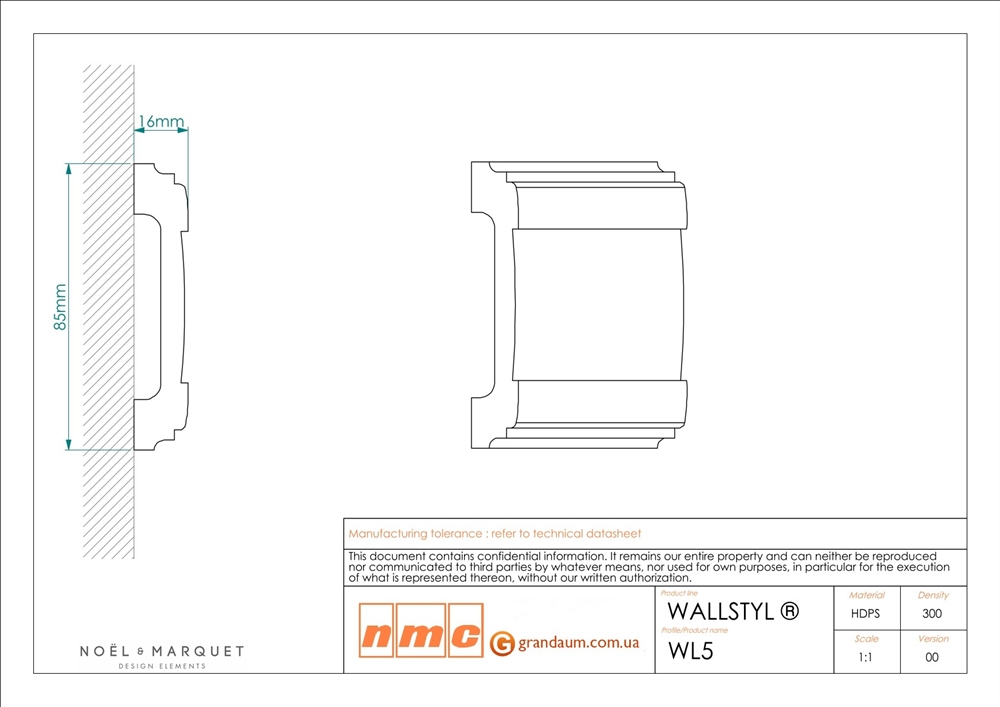 WL5 поставляется загрунтованным и готовым к покраске. Для монтажа просто приклейте каждую секцию на место. Прочный материал обеспечивает защиту поверхности от ударов и повреждений. Водостойкий WL5 идеально подходит для влажных ванных комнат, баров и кухонь.