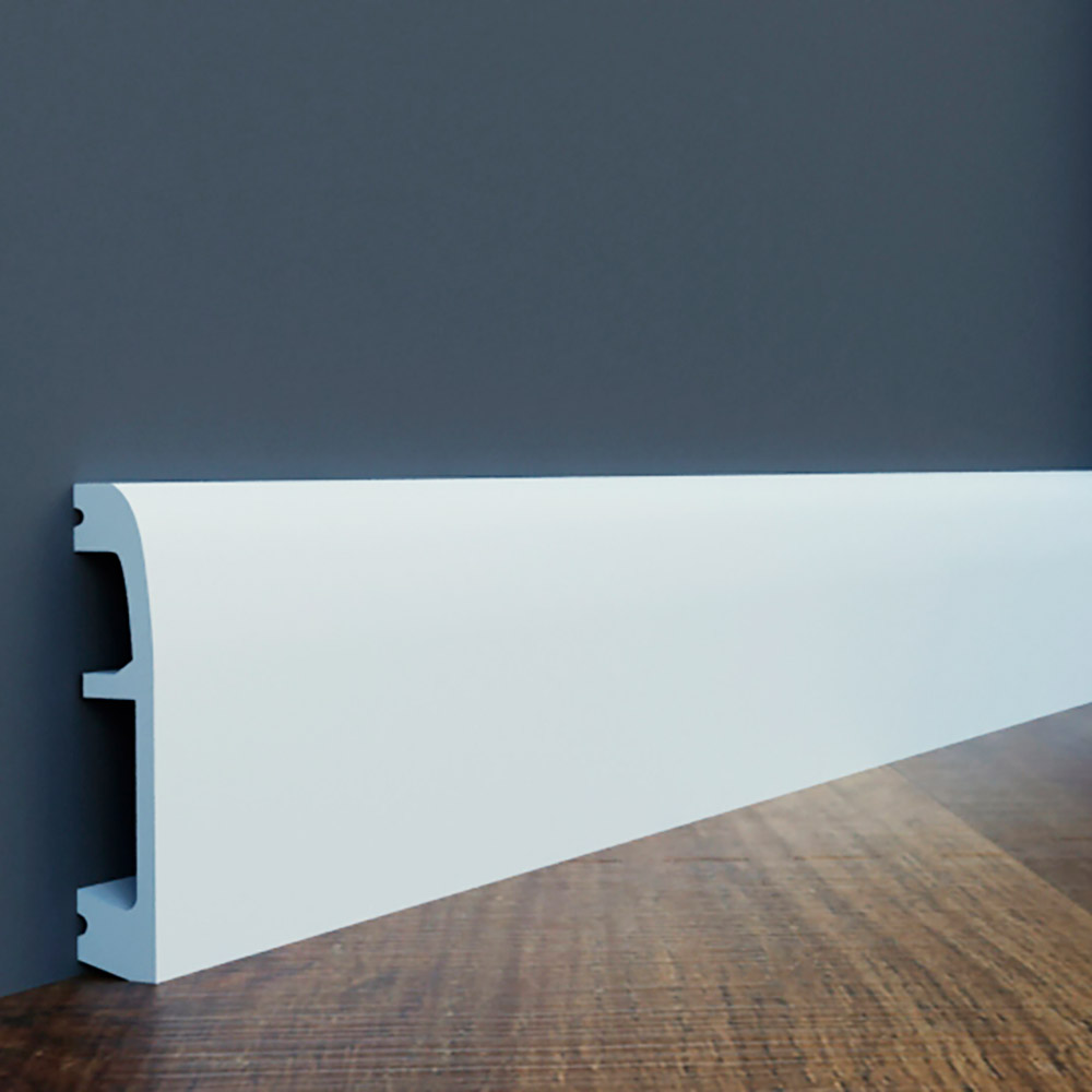 Украсьте свой интерьер пристенным гладким напольным плинтусом. Он обеспечивает плавный и гладкий переход между стеной и полом независимо от напольного покрытия, добавляя завершающий штрих интерьеру. Плинтус визуально привлекателен и практичен благодаря своим ударопрочным свойствам, защищающим от повреждений. В современных модерн интерьерах, а так же в неоклассике такие профили формируют четкие линии, характерные для дизайна. Прочный материал защищает от ударов и повреждений. Напольный плинтус производится загрунтованным и готовыми к покраске.