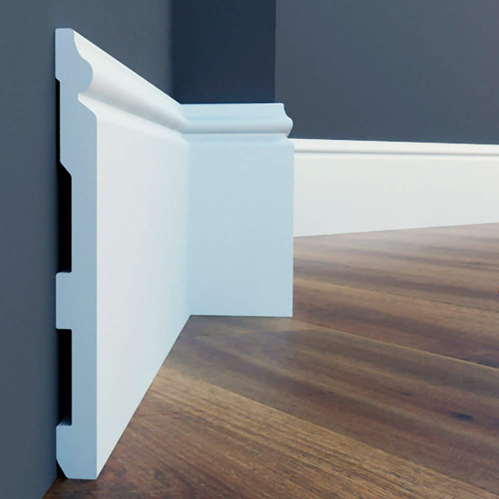 Украсьте свой интерьер пристенным гладким напольным плинтусом. Он обеспечивает плавный и гладкий переход между стеной и полом независимо от напольного покрытия, добавляя завершающий штрих интерьеру. Плинтус визуально привлекателен и практичен благодаря своим ударопрочным свойствам, защищающим от повреждений. В современных модерн интерьерах, а так же в неоклассике такие профили формируют четкие линии, характерные для дизайна. Прочный материал защищает от ударов и повреждений. Напольный плинтус производится загрунтованным и готовыми к покраске.