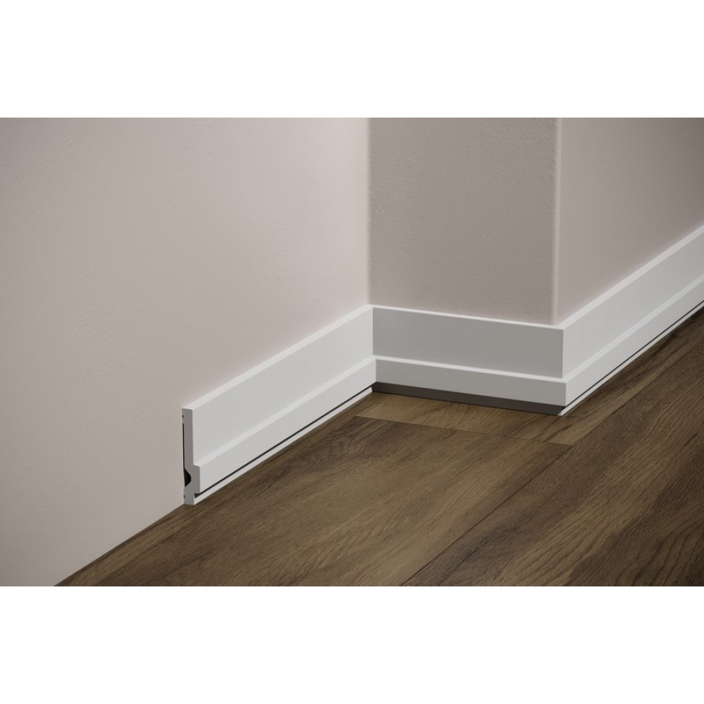Украсьте свой интерьер пристенным гладким напольным плинтусом. Он обеспечивает плавный и гладкий переход между стеной и полом независимо от напольного покрытия, добавляя завершающий штрих интерьеру. Плинтус визуально привлекателен и практичен благодаря своим ударопрочным свойствам, защищающим от повреждений. В современных модерн интерьерах, а так же в неоклассике такие профили формируют четкие линии, характерные для дизайна. Прочный материал защищает от ударов и повреждений. Напольный плинтус производится загрунтованным и готовыми к покраске.
