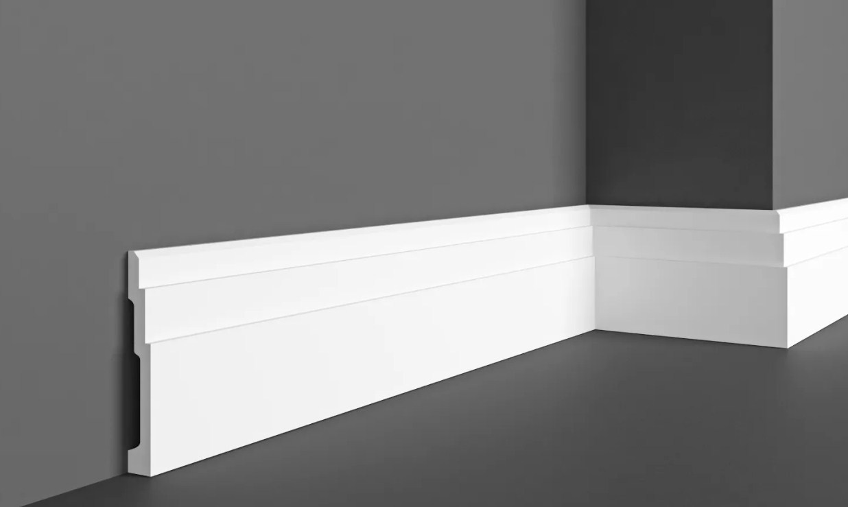 Украсьте свой интерьер пристенным гладким напольным плинтусом. Он обеспечивает плавный и гладкий переход между стеной и полом независимо от напольного покрытия, добавляя завершающий штрих интерьеру. Плинтус визуально привлекателен и практичен благодаря своим ударопрочным свойствам, защищающим от повреждений. В современных модерн интерьерах, а так же в неоклассике такие профили формируют четкие линии, характерные для дизайна. Прочный материал защищает от ударов и повреждений. Напольный плинтус производится загрунтованным и готовыми к покраске.