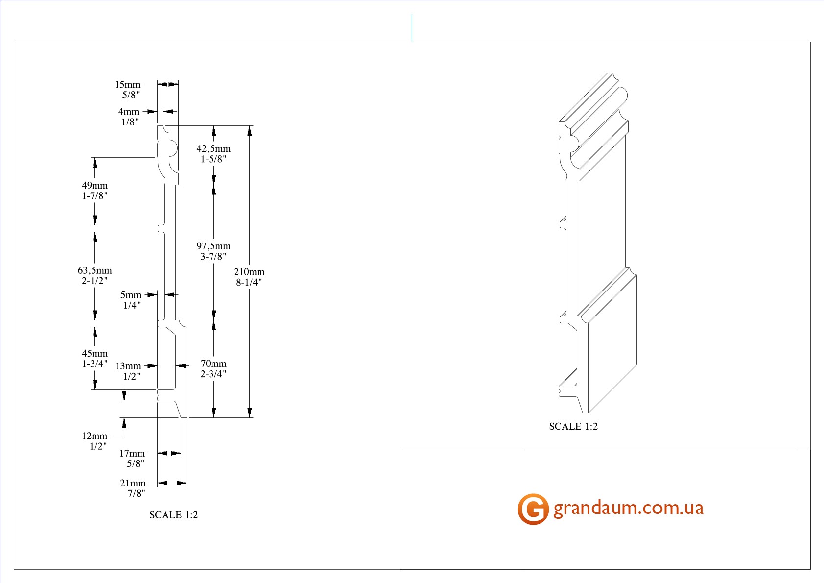 SX191 - это элегантный плинтус высотой 21 см с мелкими деталями. Создайте статичный образ и добавьте в свой интерьер классическое величие.
