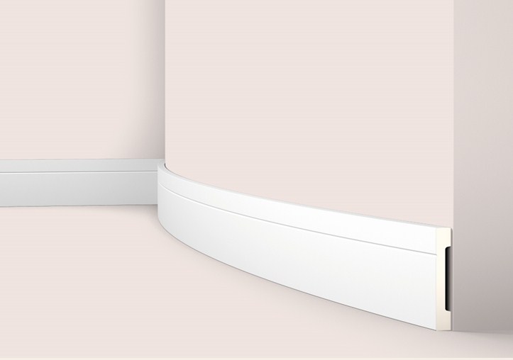 FD2 flex специально разработан, чтобы повторять форму изогнутой стены. Конструкция плинтуса FD2 flex® включает зазор сзади, чтобы скрыть кабели, что обеспечивает безупречный внешний вид. Профиль можно легко установить с помощью клея ADEFIX® PLUS, он поставляется загрунтованным и готовым к покраске.