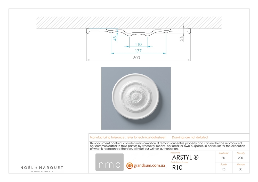 Украсьте стену, потолок или комбинируйте потолочную розетку NMC R10 ARSTYL® с другими элементами декора. Возможности декоративной отделки R10 ARSTYL® безграничны. Традиционный дизайн делает R10 идеальным дополнением к люстрам и светильникам. Персонализируйте интерьер с помощью классического и утонченного элемента дизайна R10 ARSTYL®.