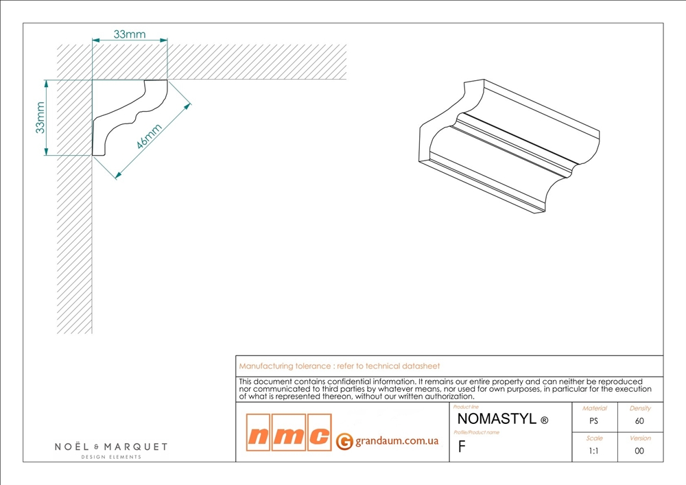 Для установки потолочного плинтуса NMC MF требуется монтажный клей NMC Adefix P5 и стыковочный клей (по желанию клиента) NMC Adefix Plus или Orac decor Decofix FX400. Количество клея Вам поможет рассчитать наш специалист.