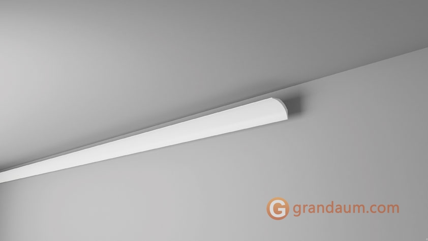 С обратной стороны карниза NE1 PURE имеется небольшой зазор, идеально подходящий для скрытия проводки и неэстетичных щелей или переходов. Карниз NE1 PURE прост в установке благодаря легкости полистирола. Для фиксации молдингов достаточно приклеить каждую секцию в конечное положение.