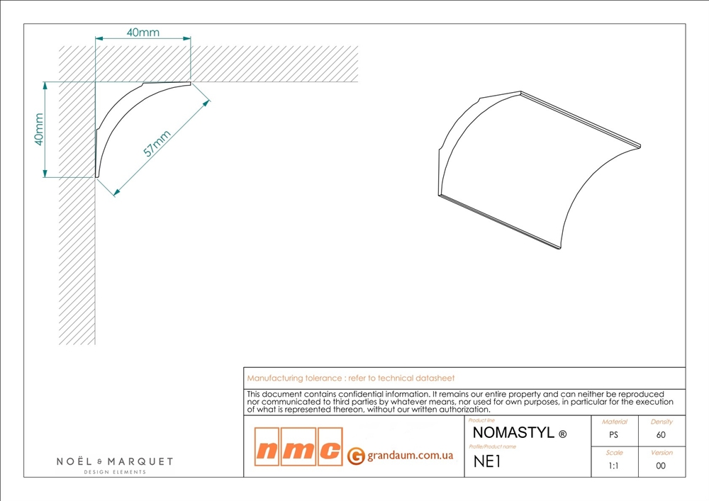 Для установки потолочного плинтуса NMC NE1 требуется монтажный клей NMC Adefix P5 и стыковочный клей (по желанию клиента) NMC Adefix Plus или Orac decor Decofix FX400. Количество клея Вам поможет рассчитать наш специалист.