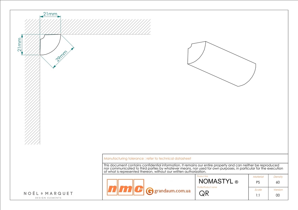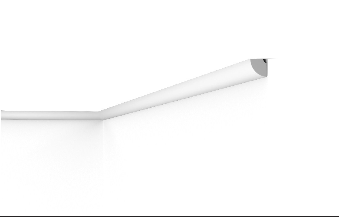 Закругленный профиль создает плавный переход от стены к потолку. NMC QR NOMASTYL® минималистичный, универсальный и подходит для большинства стилей интерьера. Поскольку QR влагостойкий, он подходит для влажных помещений, таких как ванные комнаты и кухни. Этот продукт является одним из наших самых маленьких карнизов.